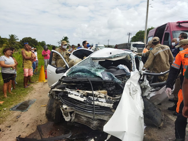 Imagens enviadas à reportagem mostram o carro com a parte dianteira destruída pela colisão. O Corpo de Bombeiros foi acionado para retirar a mulher das ferragens. O caminhão foi atingido na área lateral da frente.
